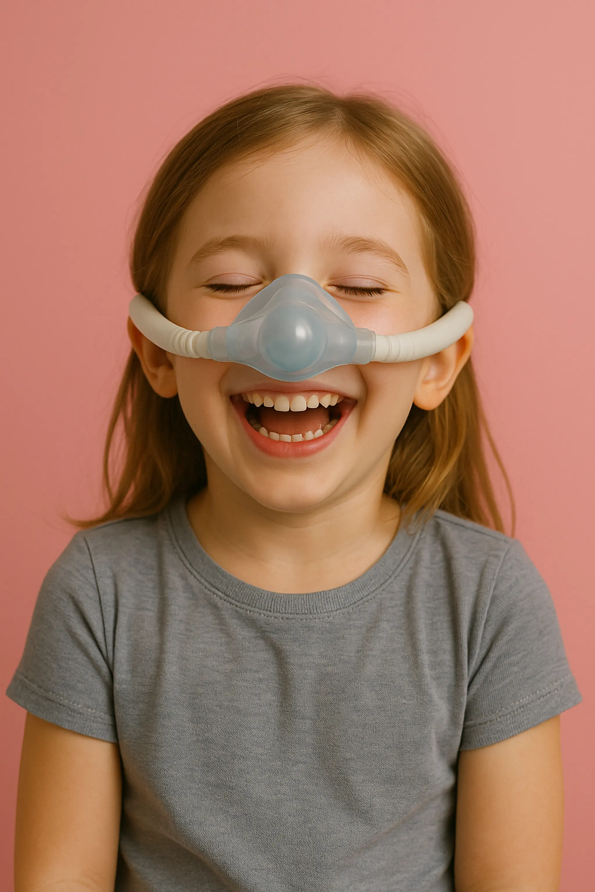 Nitrous oxide is a mild sedative your child breathes in through a small nose mask. It helps them feel calm and relaxed while staying awake and responsive.